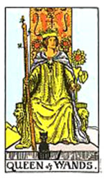 อิทธิพลของไพ่ราชินีถือไม้เท้า (Queen of Wands) คุณจะโชคดีเรื่องงานได้งานที่ใจรัก และที่ลงหุ้นงานส่วนตัวกับใครอยู่ จะประสบความสำเร็จเกินเป้าหมาย ส่วนความรักโชคไม่ช่วย พบรักใหม่แต่คบไม่นานก็เริ่มเห็นปัญหา ด้านการเงินคุณจะโชคดีมีเงินเข้ามาเรื่อยๆ และคนที่ชอบการเสี่ยงจะมีโชคจากเพศตรงข้าม แต่ควรระวังอย่าให้ใครหยิบยืมเงิน มิฉะนั้นจะเป็นหนี้ศูนย์ และช่วงนี้ควรเสริมดวงชะตาด้วยการทำบุญไหว้บูชาพระธาตุนาดูน